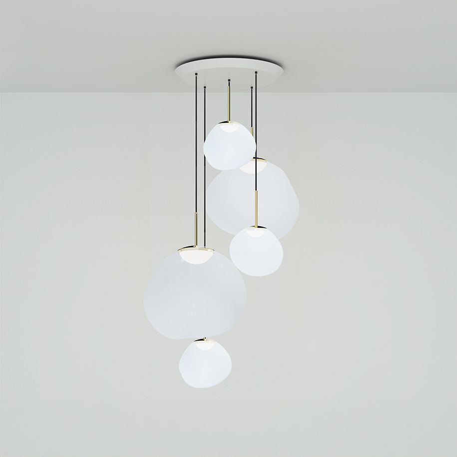 Obsessed with the idea of creating an imperfect, organic and naturalistic lighting object, Melt was created in collaboration with FRONT – a Swedish design collective. Melt is evocative of molten glass, the interior of a melting glacier, or images of deep space.