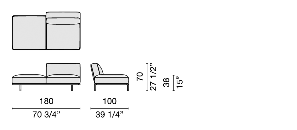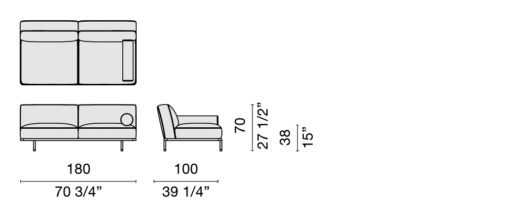 For the Cap Martin Sunset sofas, an extremely versatile seating system characterized by clean essential lines, Carlo Colombo found his inspiration in the elegantly vintage atmospheres of the 1950’s.