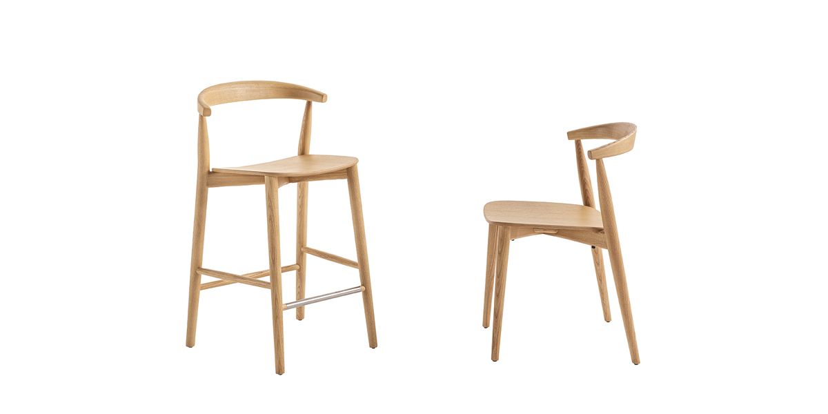 Newood Light Stool, a new item for 2019, is available in two heights and is made of solid ash wood, in the same tones as the other seats in the collection.