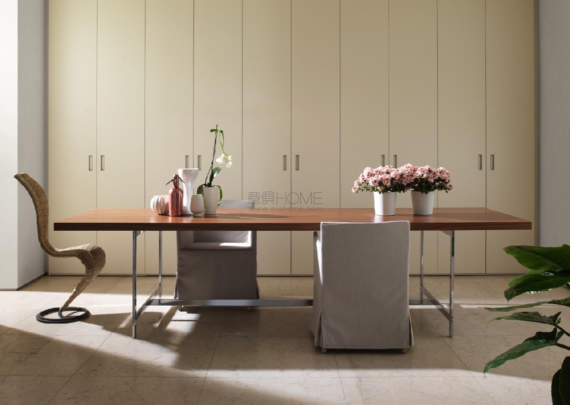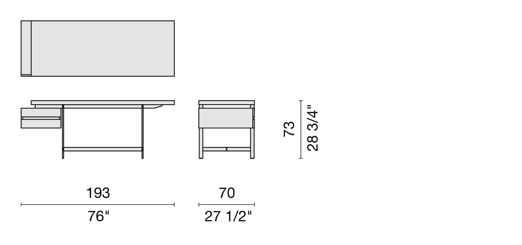 Versatile and linear, the Lochness Table by Piero Lissoni is the protagonist of a range that also includes desks with drawers that can be placed under the worktop, on the left or right side.