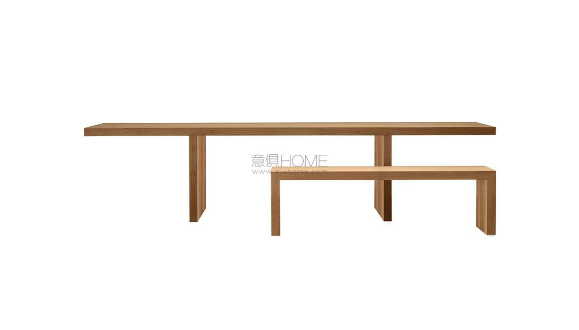 This table, composed of vertical elements covered with a horizontal top of the same height and width, is available with a natural oak or wengé-stained finish. The Millenium Hope table pairs with the matching bench, which was designed with the same rigeur and intention.