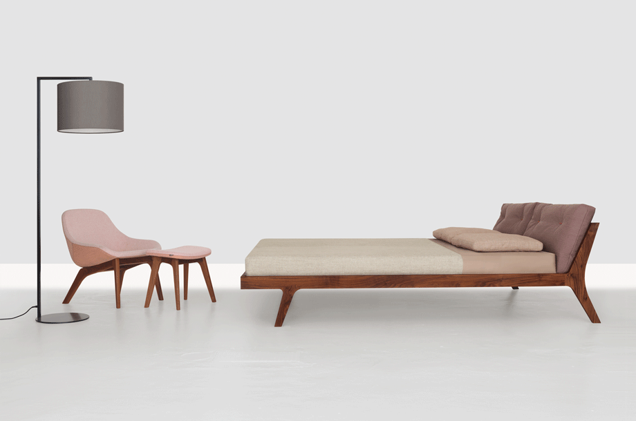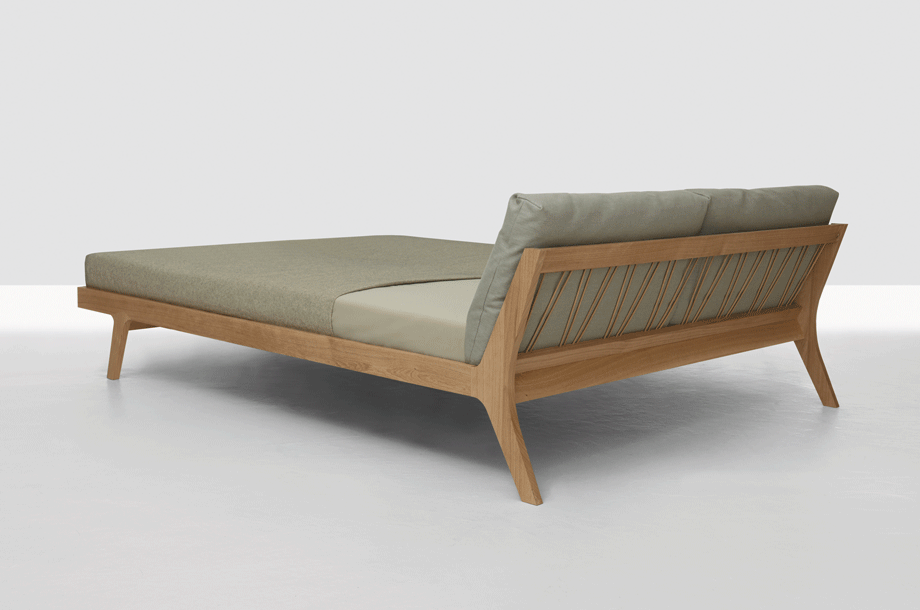 Light, effortless, comfortable and natural – these are the attributes that give this bed its name. Slimline material profiles, fine lines, a delicate frame and soft upholstery materials are the hallmarks of this bed. A touch of sophistication that doesn‘t steal the limelight but which adds definition to the bed‘s character is the lacing of bend leather straps in the back element, providing essential support for the soft back pillows.