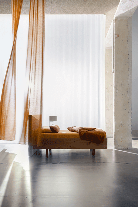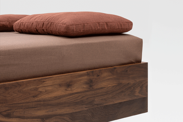 The purist design of the SIMPLE bed family puts the living material in the foreground. The lightness of the construction is enhanced by the floating frame.