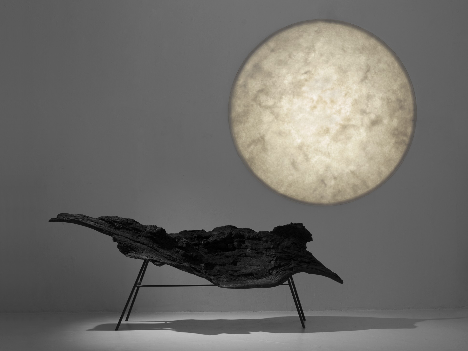 Una lampada in vetroresina, dalla bellezza magnetica e dall’ispirazione astrale. Elemento luminoso suggestivo, che sprigiona il suo chiarore caldo e soffuso e trasforma ogni parete in una finestra affacciata sulla luna.
