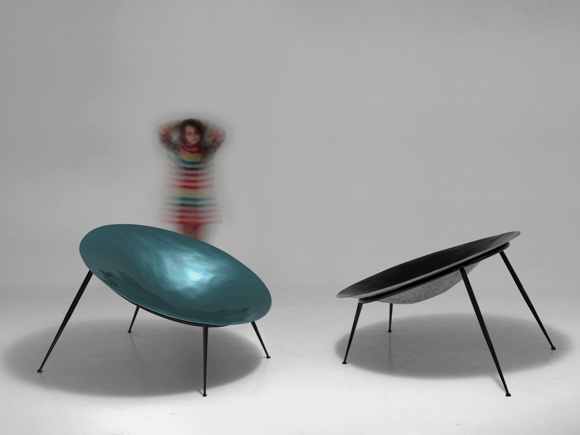 Lasciarsi cadere nella seduta di questa poltrona, avvolti dalle curve del suo guscio di vetroresina, regala un inaspettato ristoro. Sostenuti da una struttura ampia, che la circonda e la sorregge con gambe sottili e ben distanziate, si apprezza la sua stabilità e ci si abbandona tranquilli al suo abbraccio.