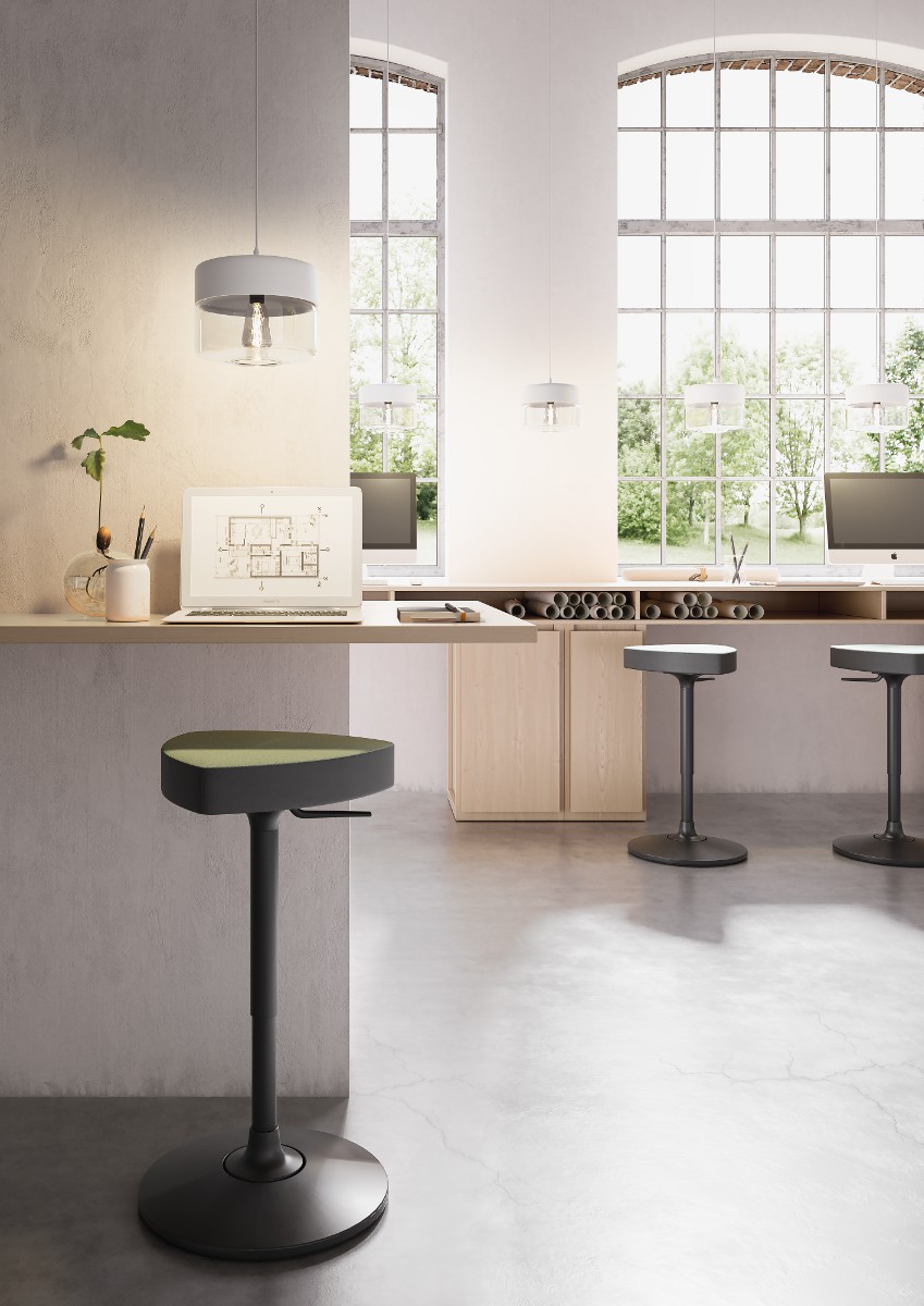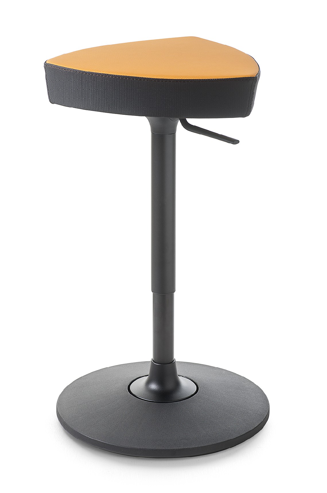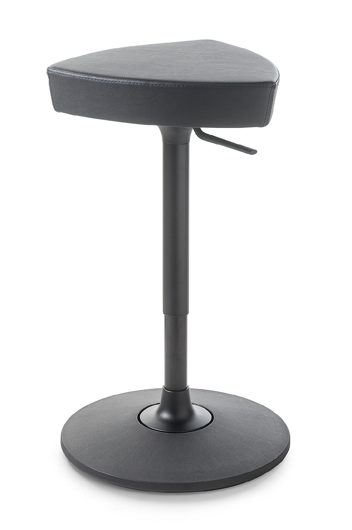 Height adjustable swivel stool, with triangle shaped seat, one-color or bi-color upholstered: