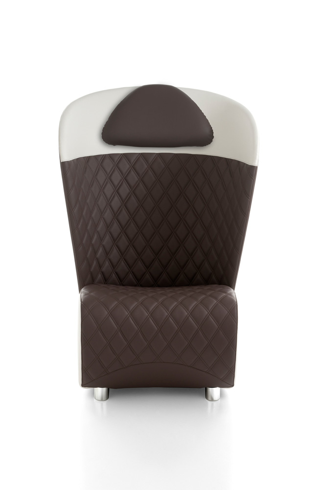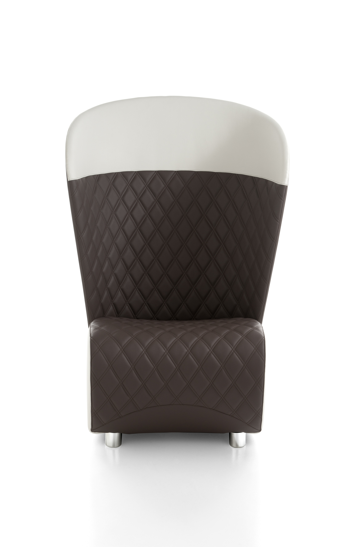 Armchair with high back for waiting, relaxing and conversation areas, available in one-colour or two-colours versions, with feet.