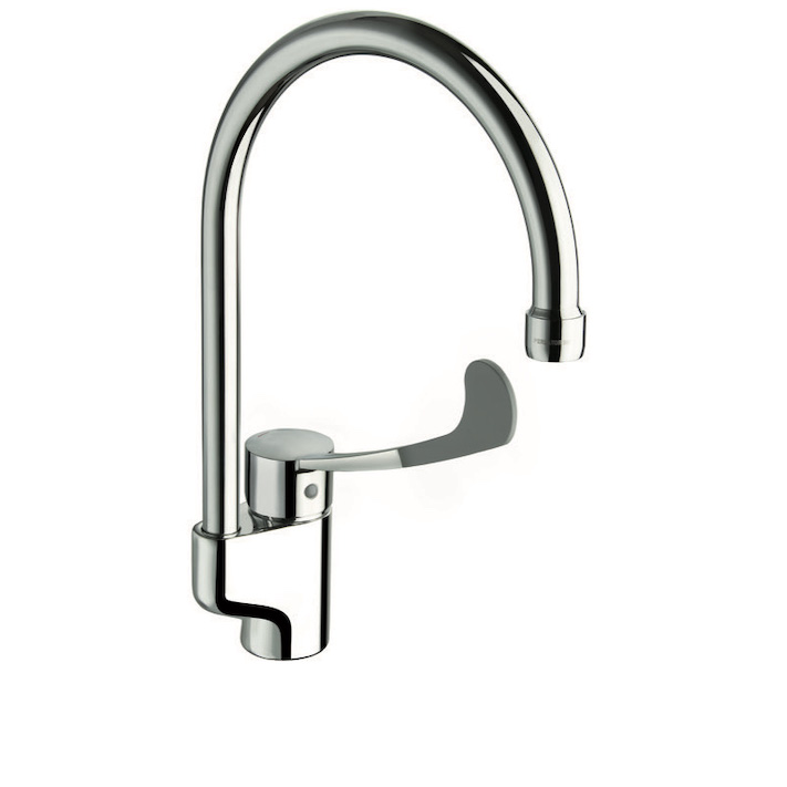 Miscelatore monocomando cucina, bocca alta orientabile, monoforo da piano, con miscelazione meccanica frontale, leva clinica soft touch, H. 330 mm