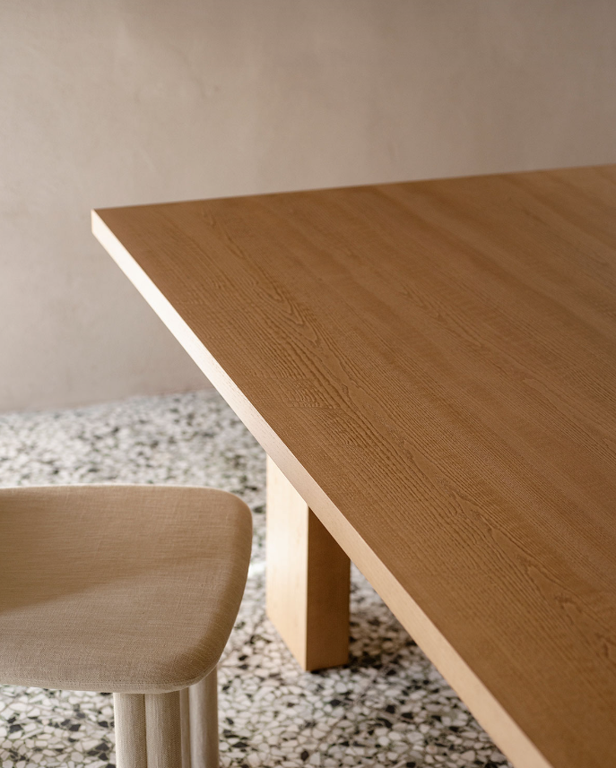 Simple and monumental, Clockwise reveals its subtle humour only to those who manage to grasp the play of steps that define the position of the legs and the alternation of their positioning in the corners of the top. Born from the first collaboration between Tacchini and designer Michael Anastassiades, it is a table with an important presence, which at the same time evokes a sense of lightness in the legs that chase each other almost dancing, rotating around a choreography that suggests the right dance steps to experience it fully. At different rhythms, following the metaphor of a gesture, the movements and activities that take place around the table can thus be told from time to time unexpectedly, as fluid and informal as the environments in which the table itself can be placed.