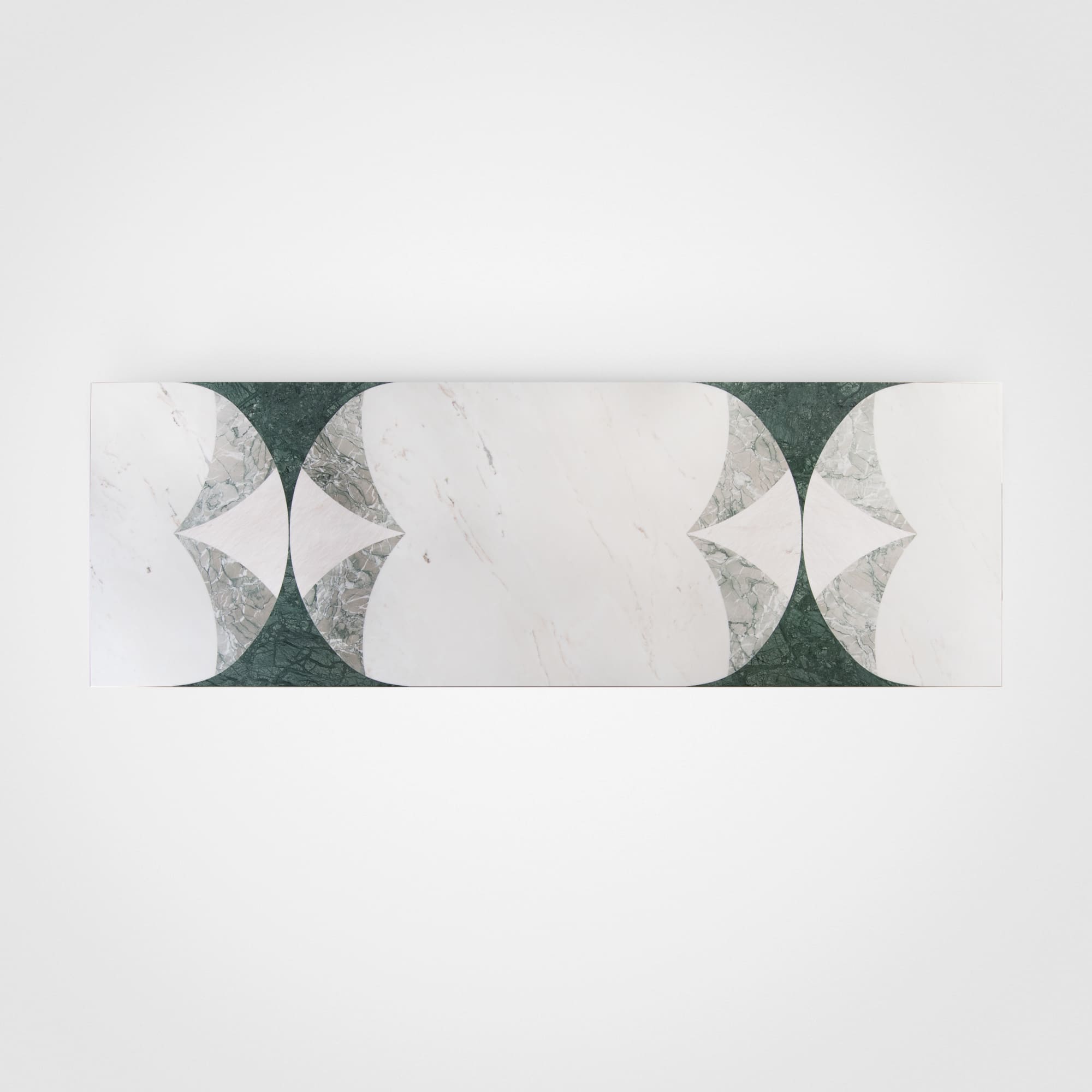 The Biloba marble dining table celebrates Portuguese architectural heritage and organic design, resulting in a creation rich in history and artistry. Drawing inspiration from the Alcoba?a Monastery, its Gothic and Baroque influences are reimagined through signature arches, meticulously crafted from three distinct marbles to form the delicate patterns of Gingko Biloba leaves. With a thoughtful balance of tradition and contemporary design, the Biloba marble dinng table stands as a timeless, heirloom-quality furniture piece.