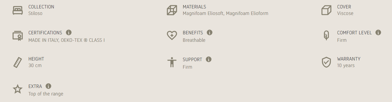 Stiloso 12 of the Stiloso line is the ideal mattress for those seeking a firm support without compromising comfort. All at 30 cm of height.