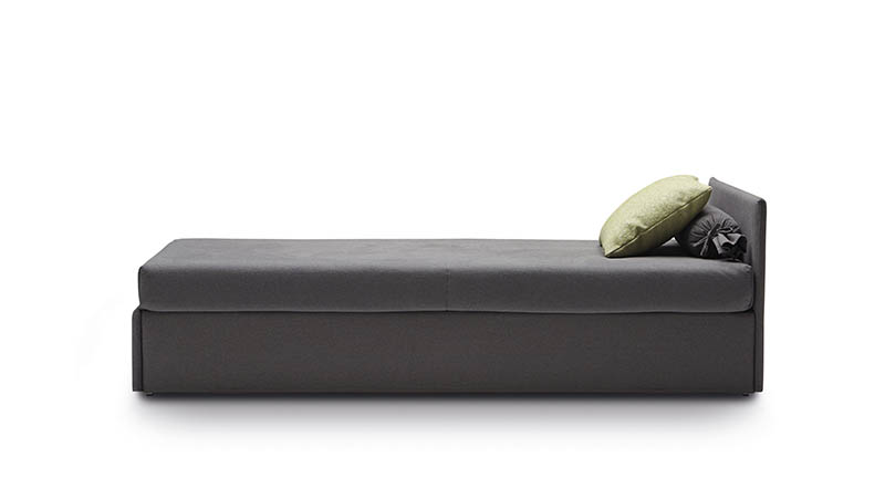 Jack is a practical and versatile sofabeds program, including models with calm or romantic designs adapting to any furnishing need. Jack is offered in multiple versions: sofa, chaise, bed with slatted base, with headboard, with footboard, full, double or with drawers and can therefore suit many environments such as a colorful child’s bed, a comfortable den or simply to be used as a family room that offers a comfortable guest bed when needed. Jack may be adorned with a large variety of cushions types according to your own taste and with a second bedspread for the pullout bed.