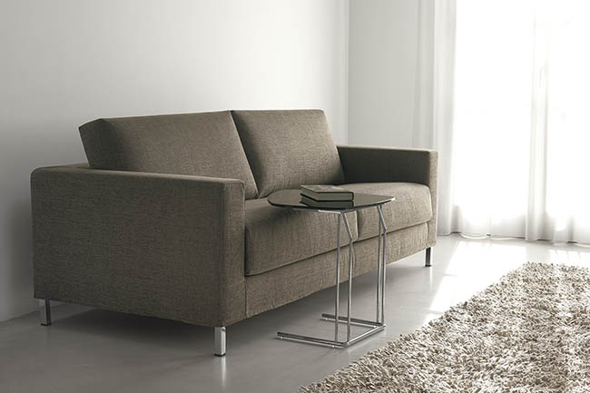 James combines innovative design and contemporary style, featuring 12 cm. legs in hammered silver metal. The bed with its mattress folds out effortlessly without the need to remove the seat and back cushions. The height of the legs makes it easy to clean under the sofa. The legs are also available chromium plated and in wengé, cherry or natural finish.