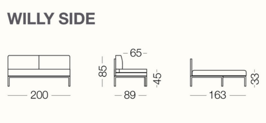 Willy Side is distinctive yet elegant, a style that is enhanced by the hammered silver metal frame. The easy-to-use front-opening mechanism and the convenient foldaway mattress avoid sitting on the bedding. The 11 cm. high foam mattress has a removable lining and is covered in a fabric of customer’s choice, while the bed base has a 100% cotton ecru quilt cover. Willy Side can be also used as a single bed without opening the mechanism, with a 22 cm. high mattress. Willy Side is available to order with a removable cover for the bed-head, as well as a duvet, pillows, metal armrests, rotating table and a wooden tray.