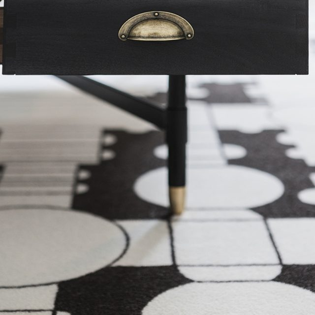 Appunti è un tappeto, realizzato 80% lana e 20% poliammide stampato in bianco e nero con bordo a filo. Ispirato ai blocchi per gli appunti e agli scarabocchi che usualmente si fanno sui fogli quando si annota o si disegna qualcosa che casualmente cadono a terra e li si adagiano.