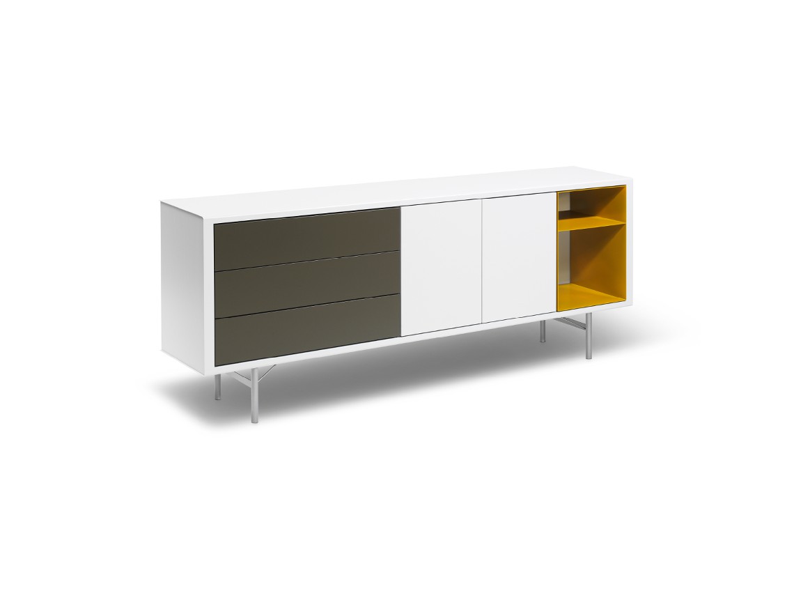 Luftig, leicht, zeitlos sch?n: Das besonders flexible Sideboard-System MODULAR passt sich sowohl verschiedenen Wohnbereichen als auch s?mtlichen Wohnbedürfnissen gleicherma?en an und bietet maximale Individualit?t in Ausführung und Farbe. Das MODULAR Sideboard ist in zwei verschiedenen H?hen und vier verschiedenen Breiten erh?ltlich. Es kann mit Türen, Klappen, Schubladen oder offenen Einbauelementen versehen und farblich individuell gestaltet werden. Die offenen Einbauelemente erhalten Sie auch in Eiche ge?lt.