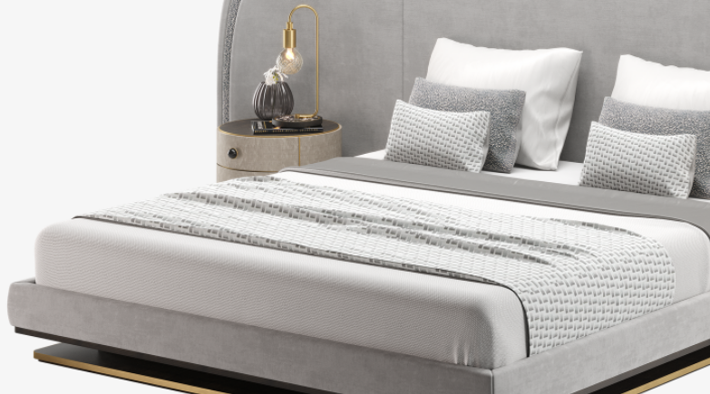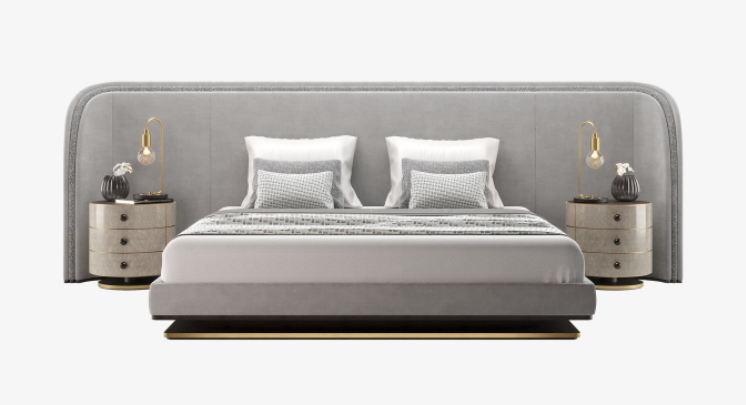 The chic CALABRIA Bed plays with the concept of a room within a room, theatrically defining the sleep space with its oversized, upholstered headboard, which is large enough to not only enclose the low-level platform bed, but also two nightstands.