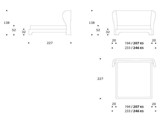 Dimensioni: larghezza 223 cm, altezza 138 cm, profondità 227 cm