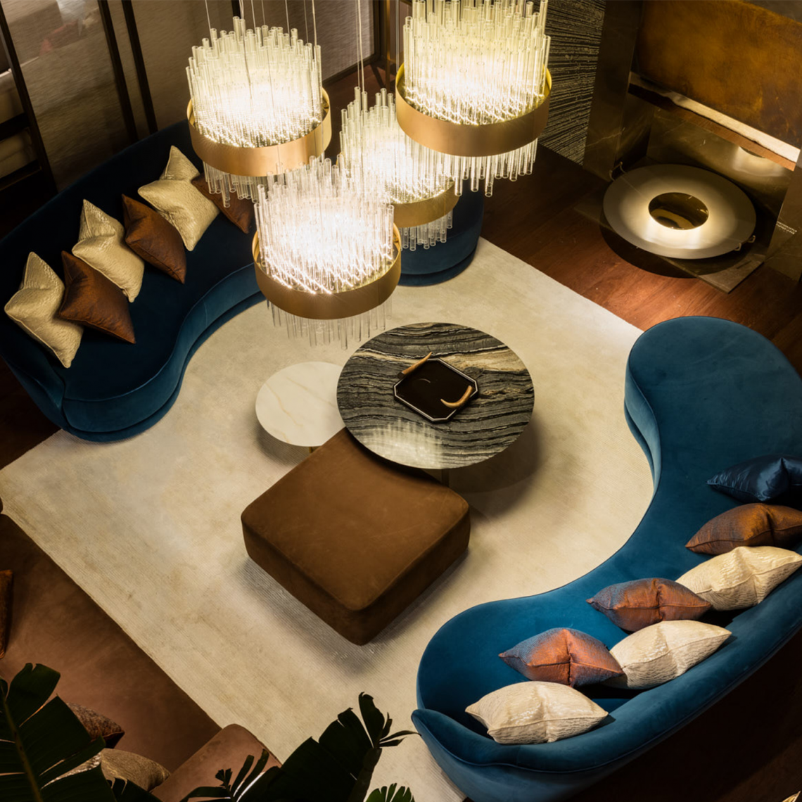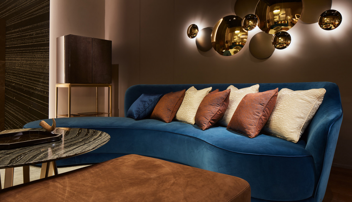 è provvisto di zoccolo in legno rivestito con il medesimo rivestimento. Il rivestimento, non sfoderabile, può essere personalizzato con morbidi velluti e cuscini decorativi. Possibilità di rivestire lo schienale a contrasto, anche con tessuti decorativi. Il rivestimento è realizzato con piping in tinta che impreziosisce ed esalta la linea del divano.