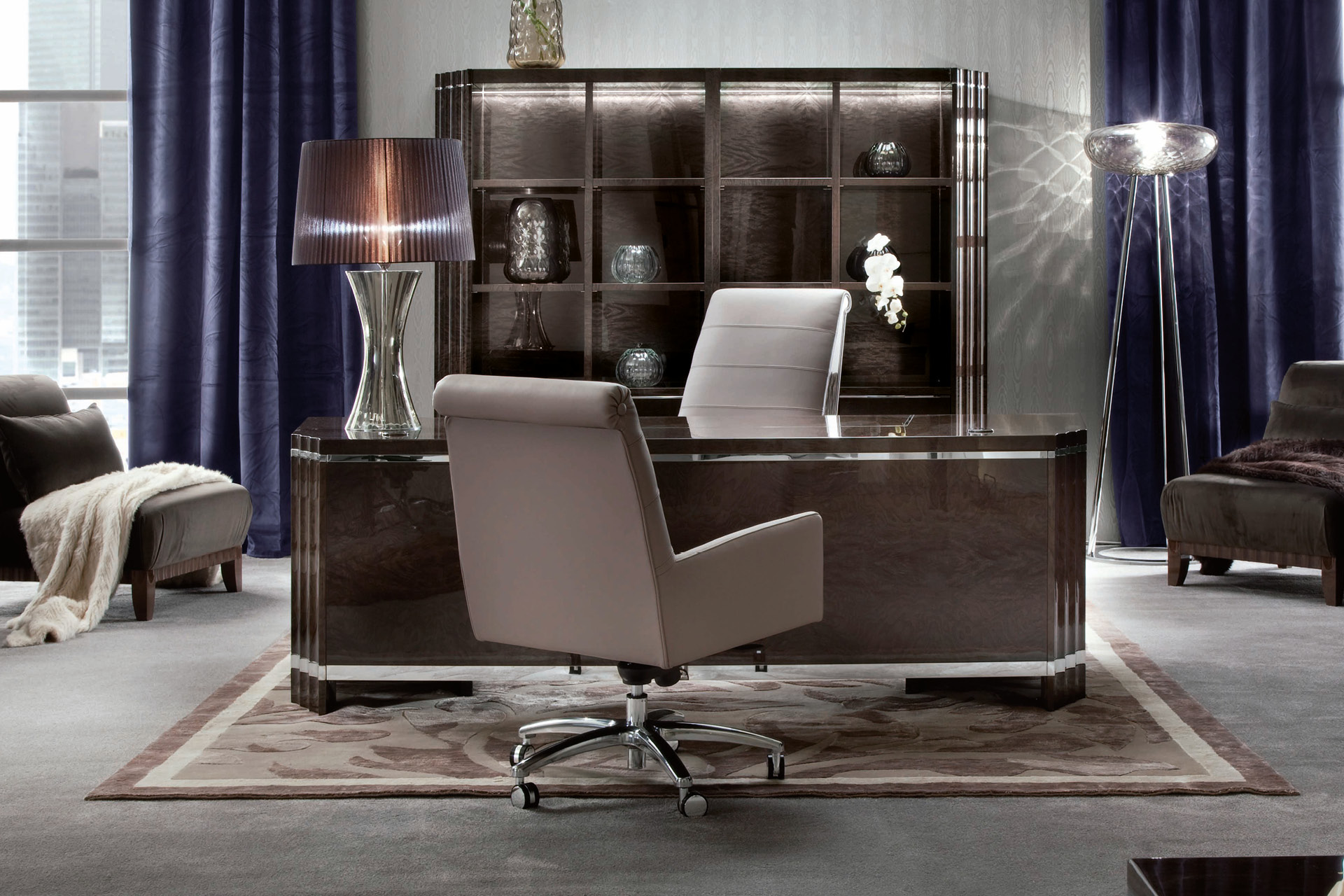 Guest office chair completely in leather, nubuk leather, velvet or suede fabric, on wheels with adjustable height. Leather needs: mt. 4,50 Nubuk leather needs: mt. 6,00 Fabric needs: mt. 3,00