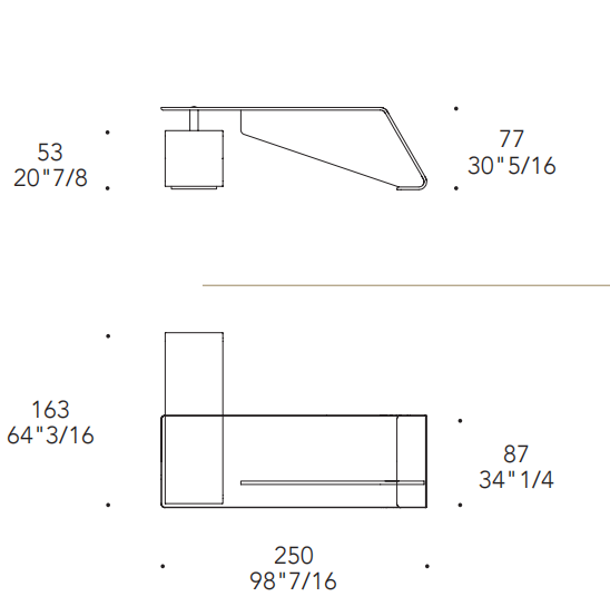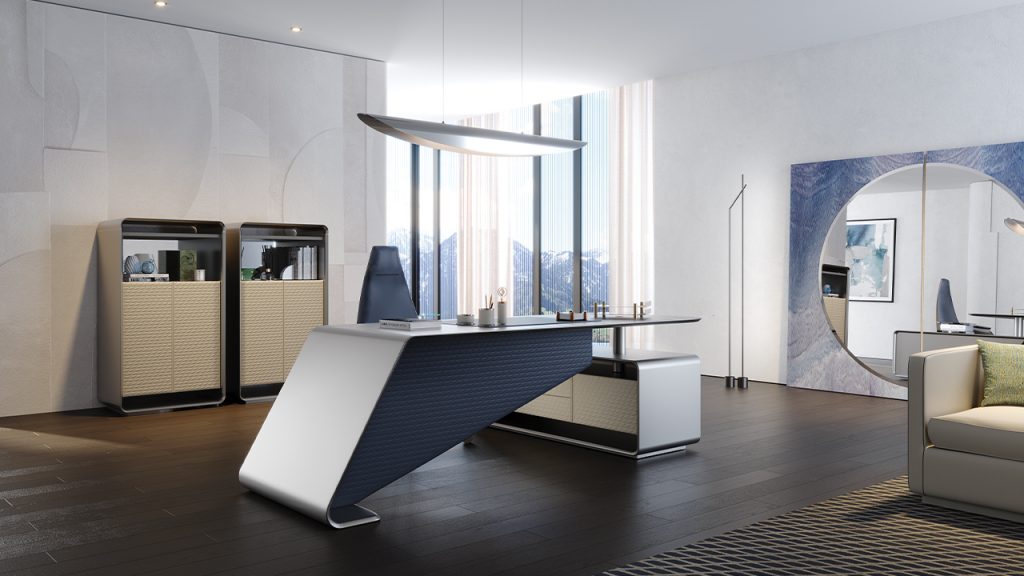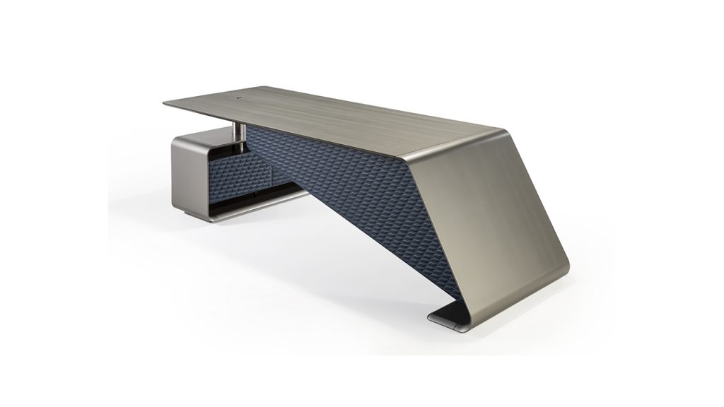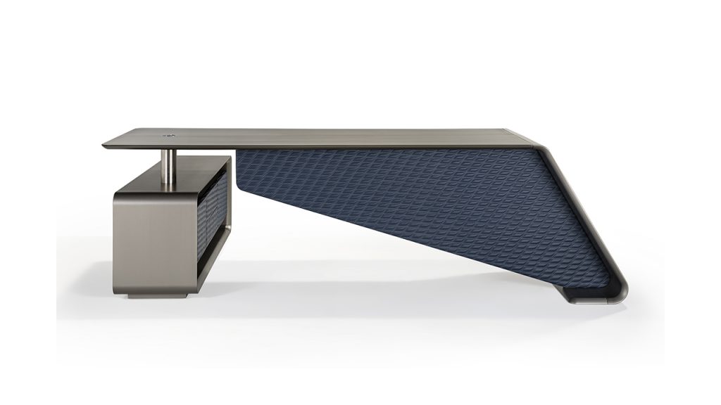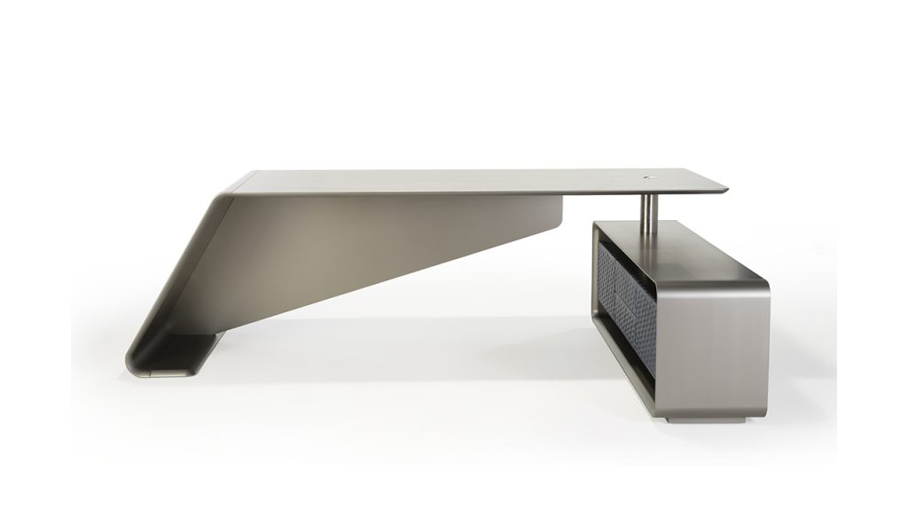 Scrivania con struttura e piano in legno in ottone (104M), ottone dark (105M), titanium (101M).
