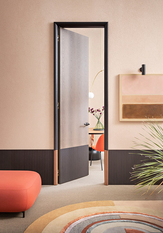Questa porta di design è una delle più caratterizzanti dell’opera di Stern. Le specchiature, che reinterpretano le porte degli appartamenti classici della New York anteguerra, sono disponibili nella versione singola, doppia o tripla.