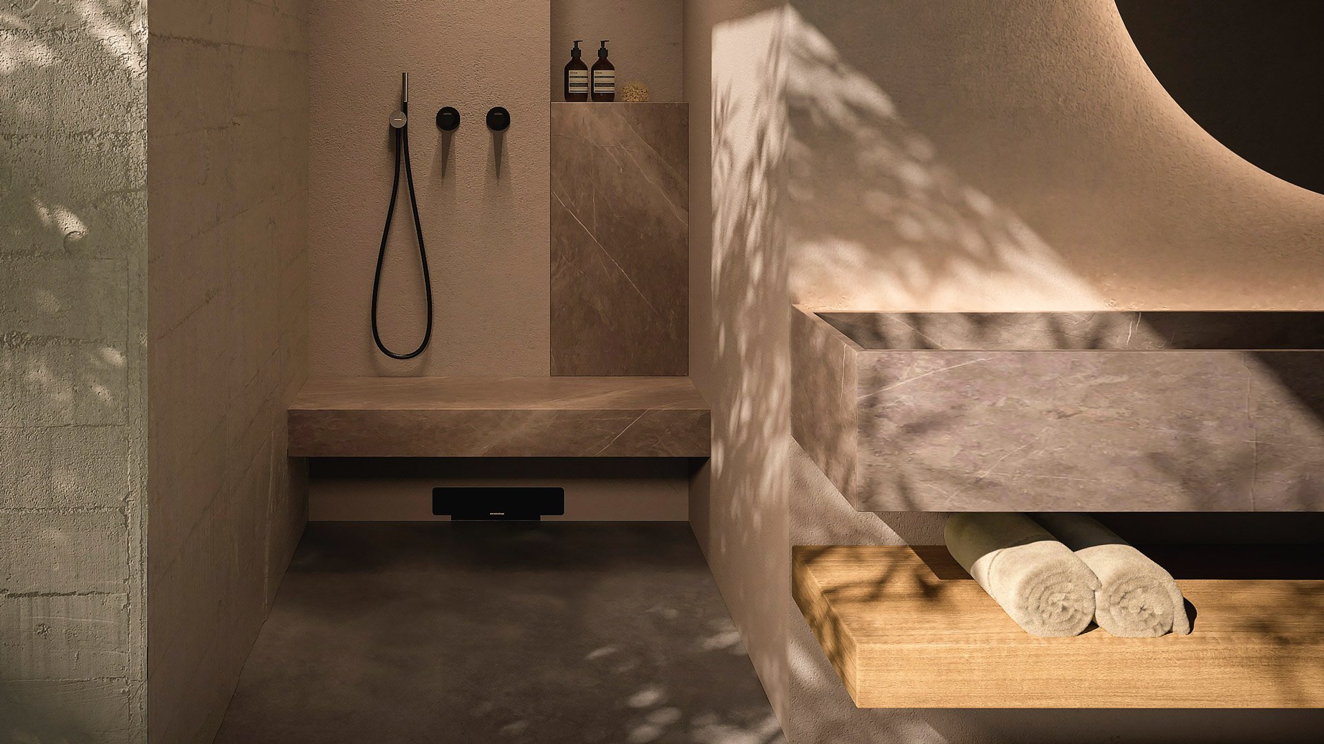 Forme essenziali e assolute che trovano posto anche fuori dallo spazio doccia, per originare composizioni diverse per posizione, dimensioni, combinazioni materiche che danno vita al sistema Cartesio. Perfette per ospitare lavabi da appoggio sollevandoli da terra e allo stesso tempo per fornire una quinta scenica davanti alla quale esaltare i volumi del bacino, definiscono una microarchitettura domestica, fatta di proporzioni equilibrate, pieni e vuoti, primi piani e fondali prospettici che arredando l’ambiente bagno con eleganza e perfezione. Nell’area lavabo Cartesio permette inoltre di posizionare tutti gli accessori per la cura del viso e altri oggetti utili per i personali riti quotidiani, potendone così disporre in modo veloce e funzionale.