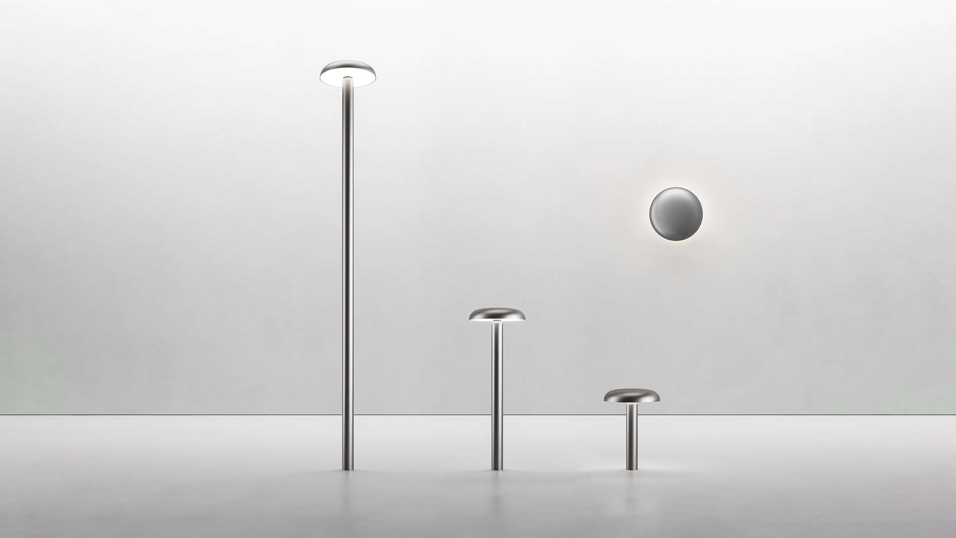 The curvature of the head echoes the geometry of Gople, a detail that creates a dialogue with BIG's other indoor and outdoor proposals for Artemide.
