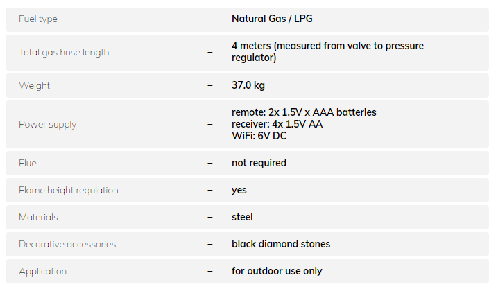 The multidimensional flame of the freestanding fireplace Galio Star Corten will become an instant showstopper in your outdoor space. Since it doesn’t require any hard connection you can easily move it around your terrace. Made of weather-resistant Corten steel, this fire pit will add style to any commercial or residential spaces. Available in two types of gas supply: Natural Gas or LPG. Additionally, Galio Star Corten offers flame size regulation.