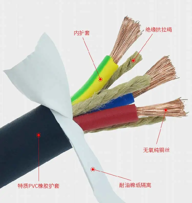 橡套電纜是一種以銅芯導(dǎo)體為主、特制橡膠為護(hù)套的電纜,具有良好的防火阻燃、耐凍絕緣特點(diǎn);同時(shí)橡套有多種顏色可選擇,無(wú)論是家用、工地使用、特種作業(yè)使用都有您喜歡的顏色可供選擇,還能來(lái)電定制!
