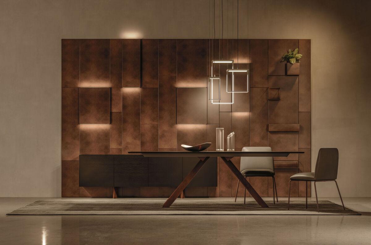 Chandelier in painted metal with LED lighting plate. Steel supporting cables, standard cable length 1,2 mt. included. Electric cable available in silver or black finishing. Brassie is available in 4 sizes. Each pendant lamp can be used alone or in groups of 3/ 4 / 5