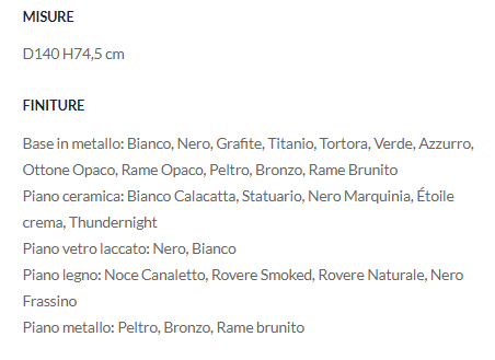 La base a raggiera è realizzata in metallo verniciato ed è disponibile in tutte le finiture Ronda Design. La vasta proposta di piani in diversi materiali e finiture (ceramica, vetro, metallo, legno) garantisce la possibilità di una forte personalizzazione.