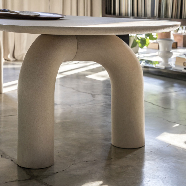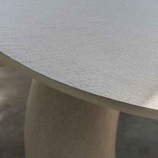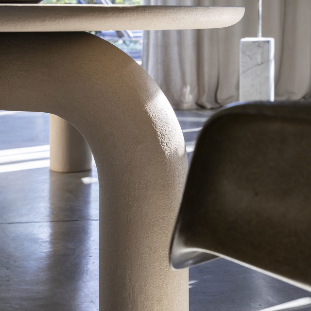 Dining table with a strong identity. Designed with a thickness that emphasizes and imposes its presence, evoking an elegant stability. Monumental and poetic. The soft curves of the legs give a pure and exclusive refinement that allow it to adapt harmoniously in different contexts, be they classic or contemporary.