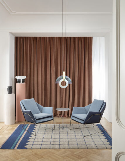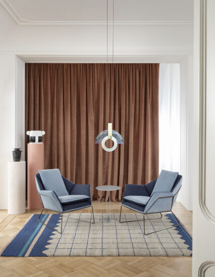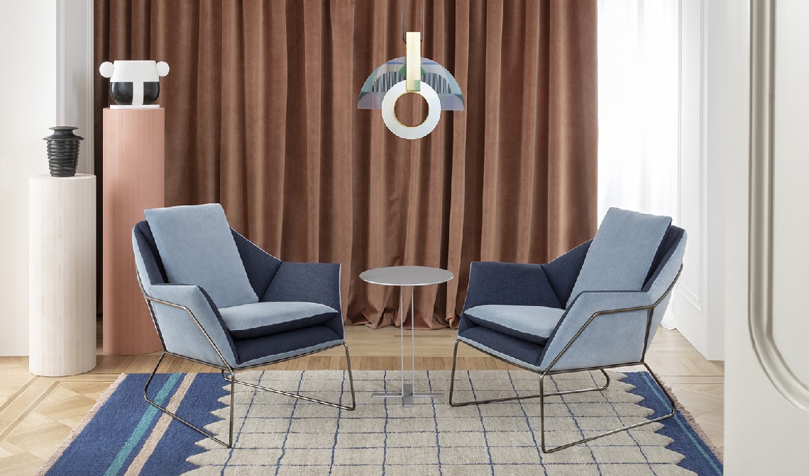 New York, a collection which proudly bears the name of the Big Apple. Two souls, uptown and downtown, enclosed in a single piece whose fully changeable covers reveal its innate versatility. The unusual and polyhedral ergonomics of the New York armchair encourages a personal use of the covers and the two colours, allowing different colour solutions from a single choice. The frame in iron rod comes in many colour and coating finishes. Fully removable covers.