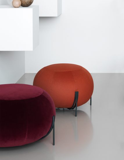 Geo pouf is an accessory that can be placed in any home and contract environment. It is a versatile element that can connect with diverse styles with a simple change of upholstery and choice of exclusive fabrics. Geo is a pouf that adds a touch of color and personality to any environment, while creating easy extra seating. The metal structure on which it rests enhances the design and even facilitates better cleaning. Fully removable covers.