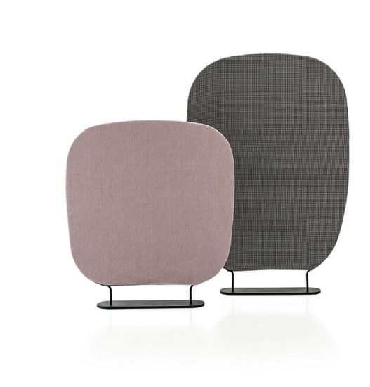 spaces: decorating, separating, reserving private and intimate corners. The two sizes and the different textiles for upholstery allow for a high degree of customization in terms of space and product.