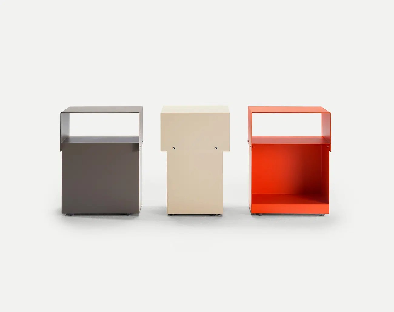 Its open, minimalist structure, shunning draws, enables quick access, while its castors enable it to keep up with our paced lifestyle, at home or in the office.