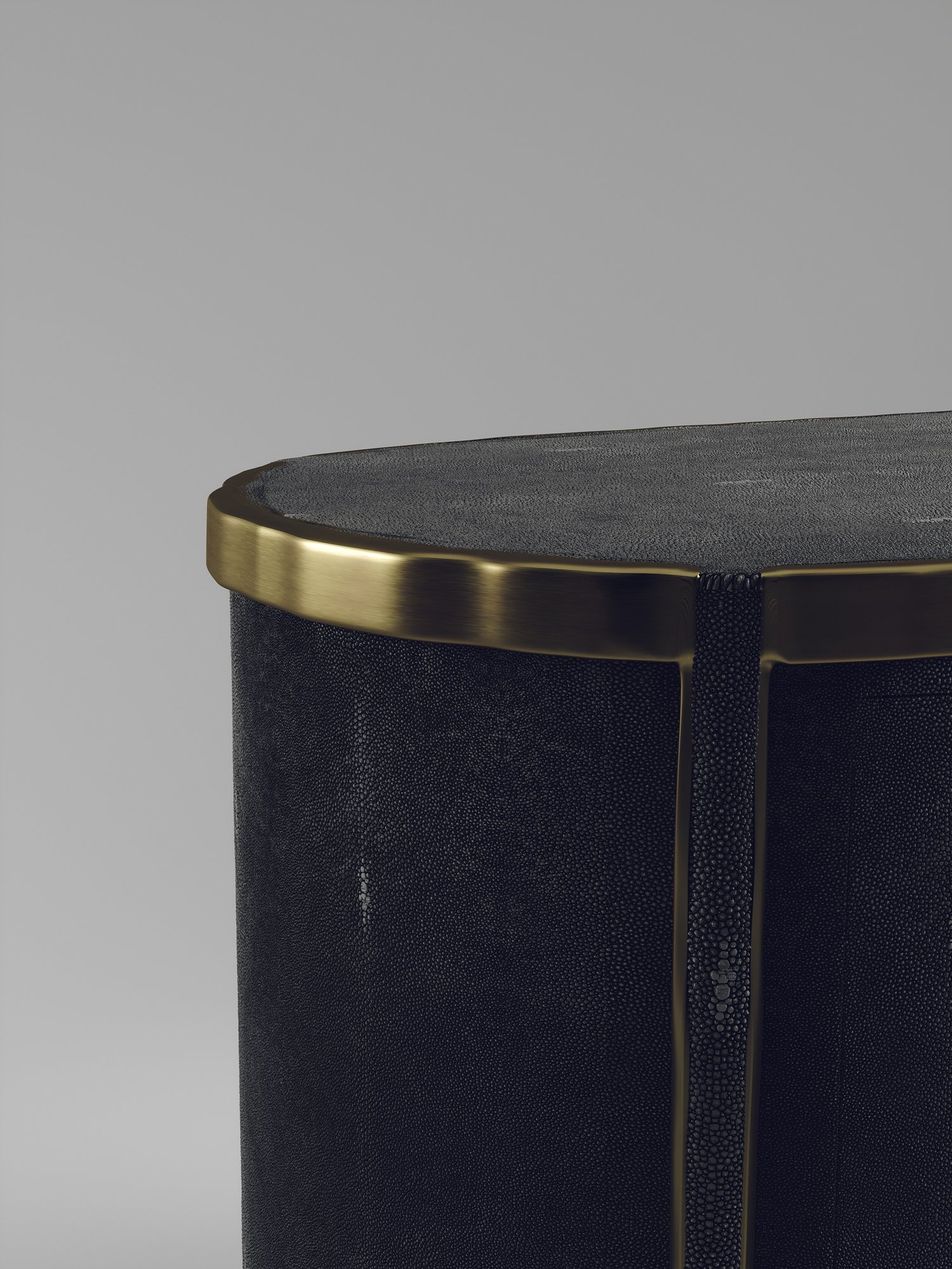 The Melting Buffet by R&Y Augousti is an elegant piece for any space. The cream shagreen inlaid piece is classic, but accentuated by their signature organic melting bronze-patina brass frame. This credenza includes 4 doors that opens up to 3 shelves. This piece is part of the Melting Capsule. Available in other finishes.