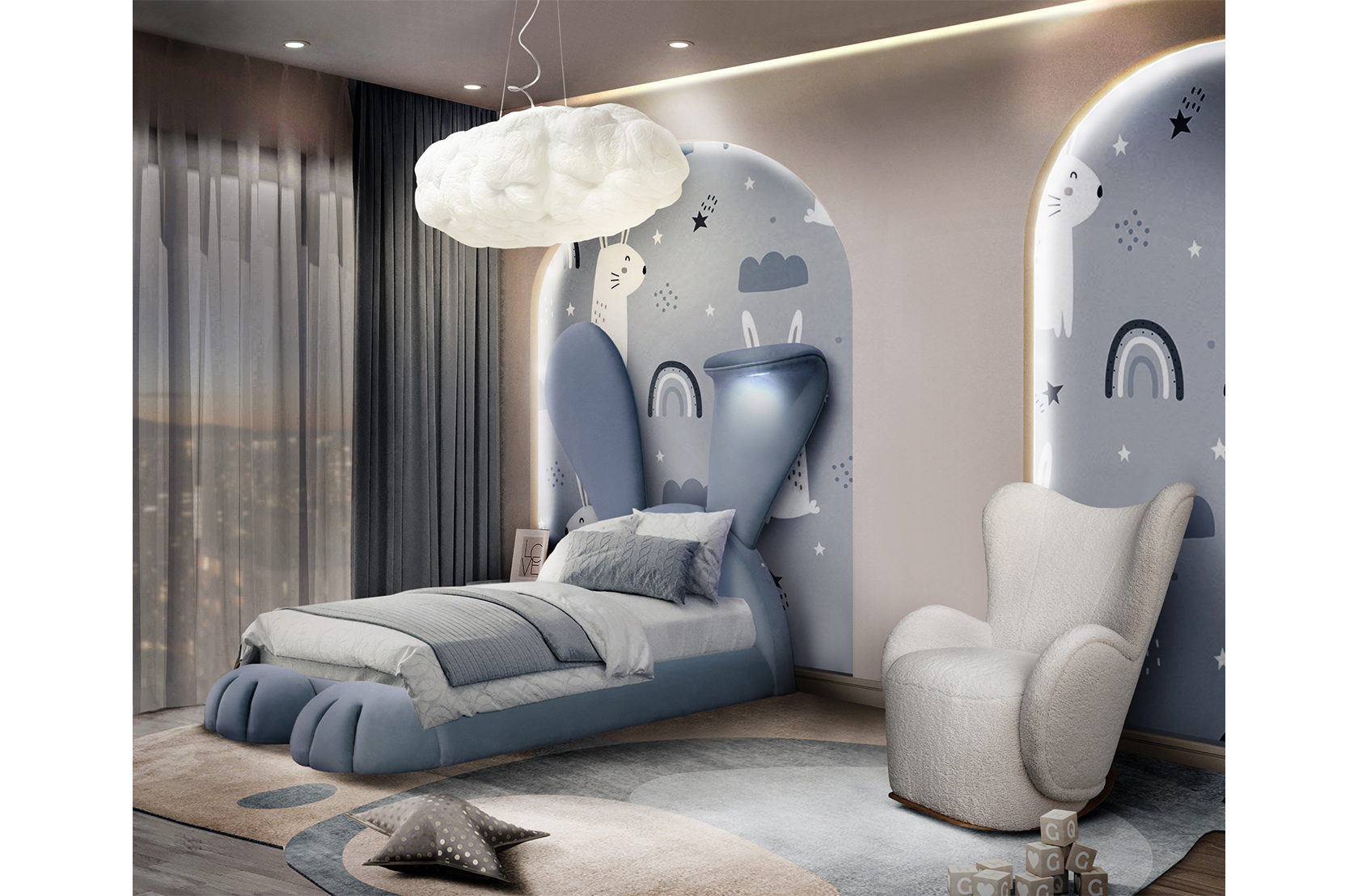 Mr. Bunny Bed is inspired by Alice in Wonderland, the Bunny bed promises to take your little one into a fantasy land where he/she can explore their wildest dreams while being fascinated by the beauty of nature.