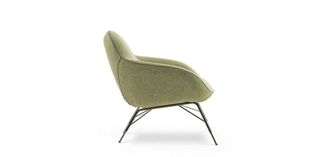 La poltroncina Spoutnik immaginata da Sacha Lakic è un'ispirazione anni '50. Il suo volume contenuto le permette di sistemarla in qualsiasi ambiente.