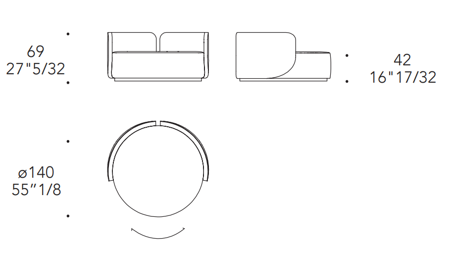 Poltrona girevole imbottita e rivestita in pelle o tessuto. Base in finitura Bronze (100M).