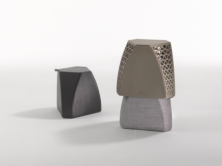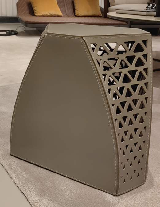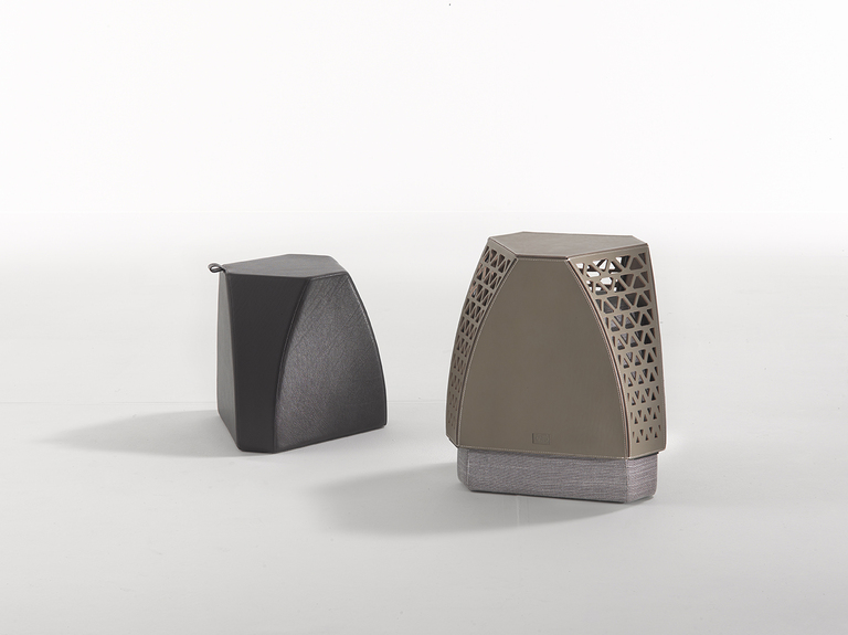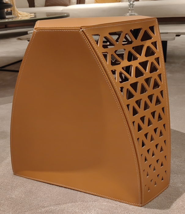 Virginia Harper設(shè)計(jì)的Hudson:典雅的中國(guó)盒子組合,虛實(shí)結(jié)合,兼具輕盈感和材質(zhì)感。 Hudson 咖啡桌中內(nèi)含另一個(gè)咖啡桌。第一個(gè)Hudson 咖啡桌是一個(gè)迷你建筑結(jié)構(gòu),以紐約的自由塔為靈感。內(nèi)空的結(jié)構(gòu)精湛重現(xiàn)六面體的造型并向上躍動(dòng)。第二個(gè)為咖啡桌-圓沙發(fā)凳,能完美插入第一個(gè)咖啡桌空腔中。軟皮革或皮革小手柄可方便取出和移動(dòng)圓沙發(fā)凳,并在另一個(gè)元素旁邊使用或單獨(dú)使用。
