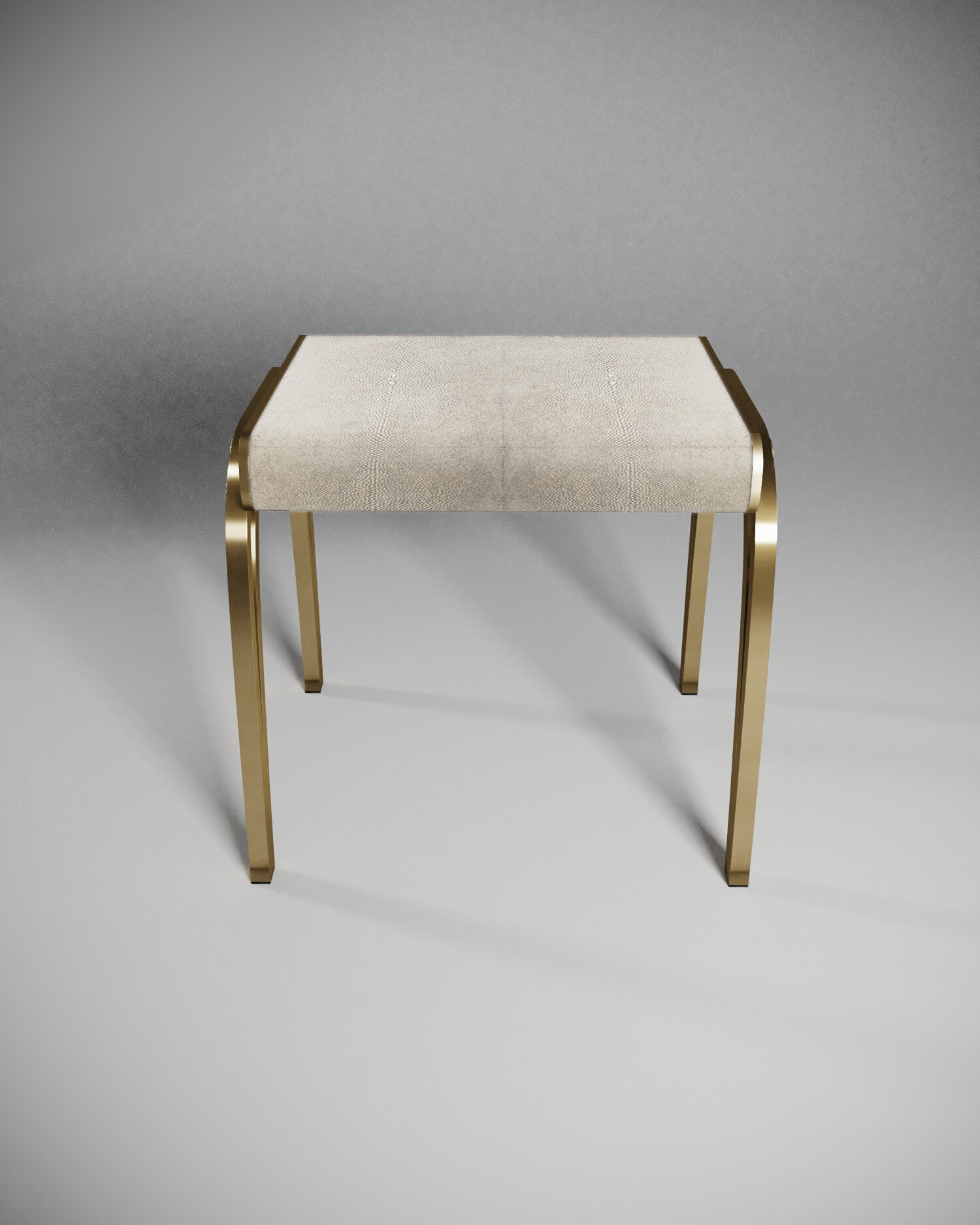 The Limited Edition Victoria stool by R & Y Augousti is a sophisticated piece that provides comfort, whilst retaining its elegant and luxurious aesthetic. The seat is inlaid in cream or black shagreen, with a bronze-patina brass frame. Available in other finish combos. This stool is a part of a 4-piece limited edition capsule collection by R & Y Augousti.