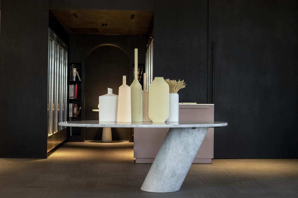 Vero e proprio record costruttivo, il tavolo “Eccentrico” porta Angelo Mangiarotti verso i primati di alcuni grandi “costruttori” di mobili del Novecento, come il Franco Albini della libreria “Veliero” e il Carlo Mollino del tavolo “Cremona”: progetti che per i limiti a cui erano spinti hanno mostrato traguardi teorici mai raggiunti prima.