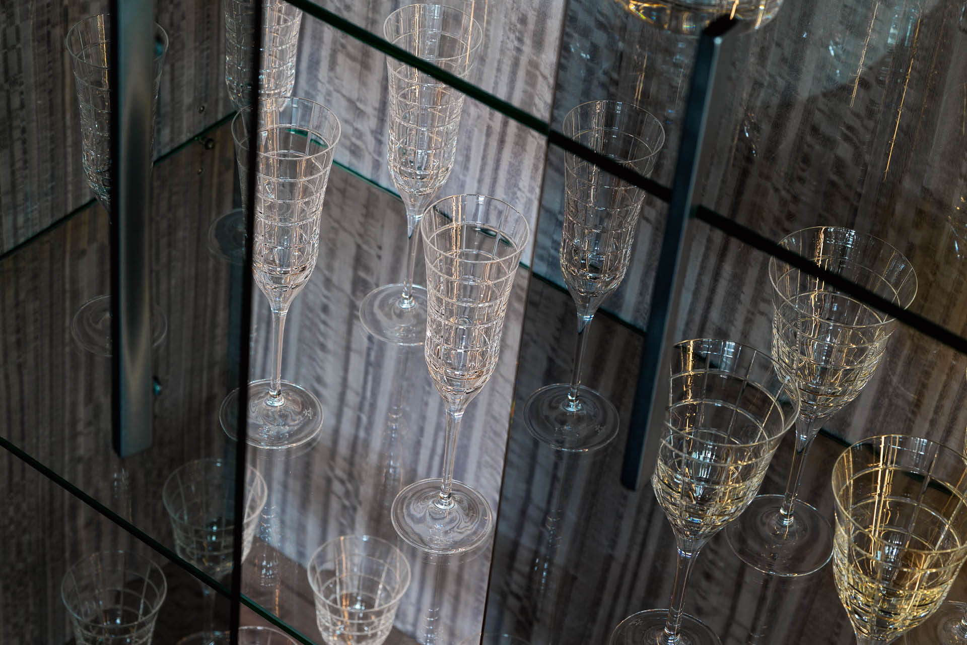 Glasses in transparent "Florentine" crystal with special hand engraving.