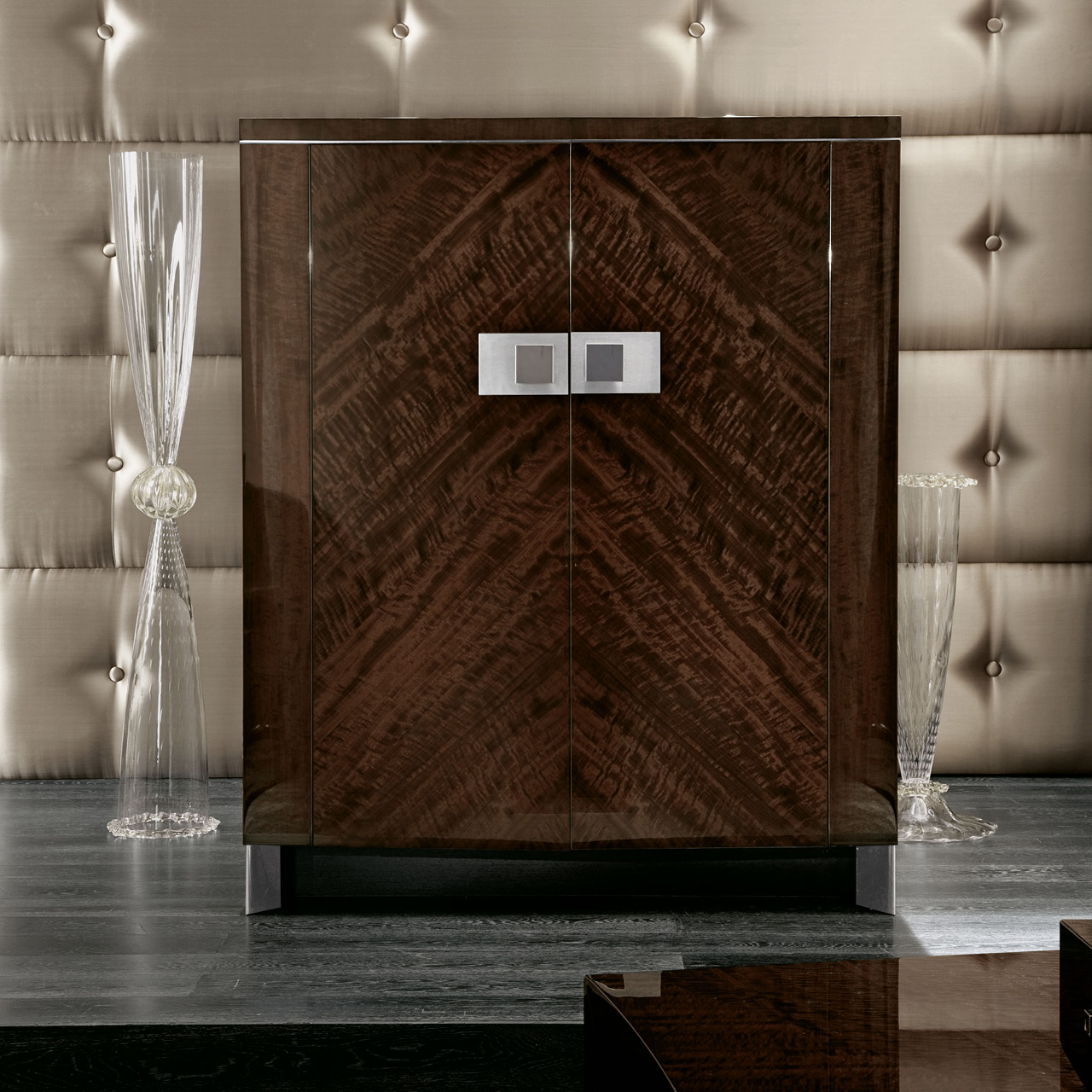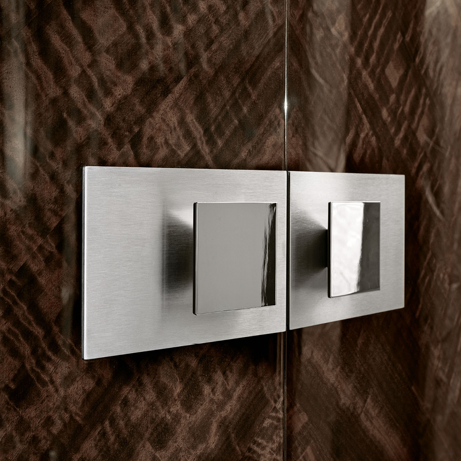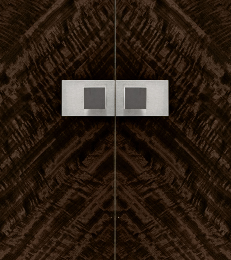 Armoire in european curly eucalyptus veneer in high gloss polyester