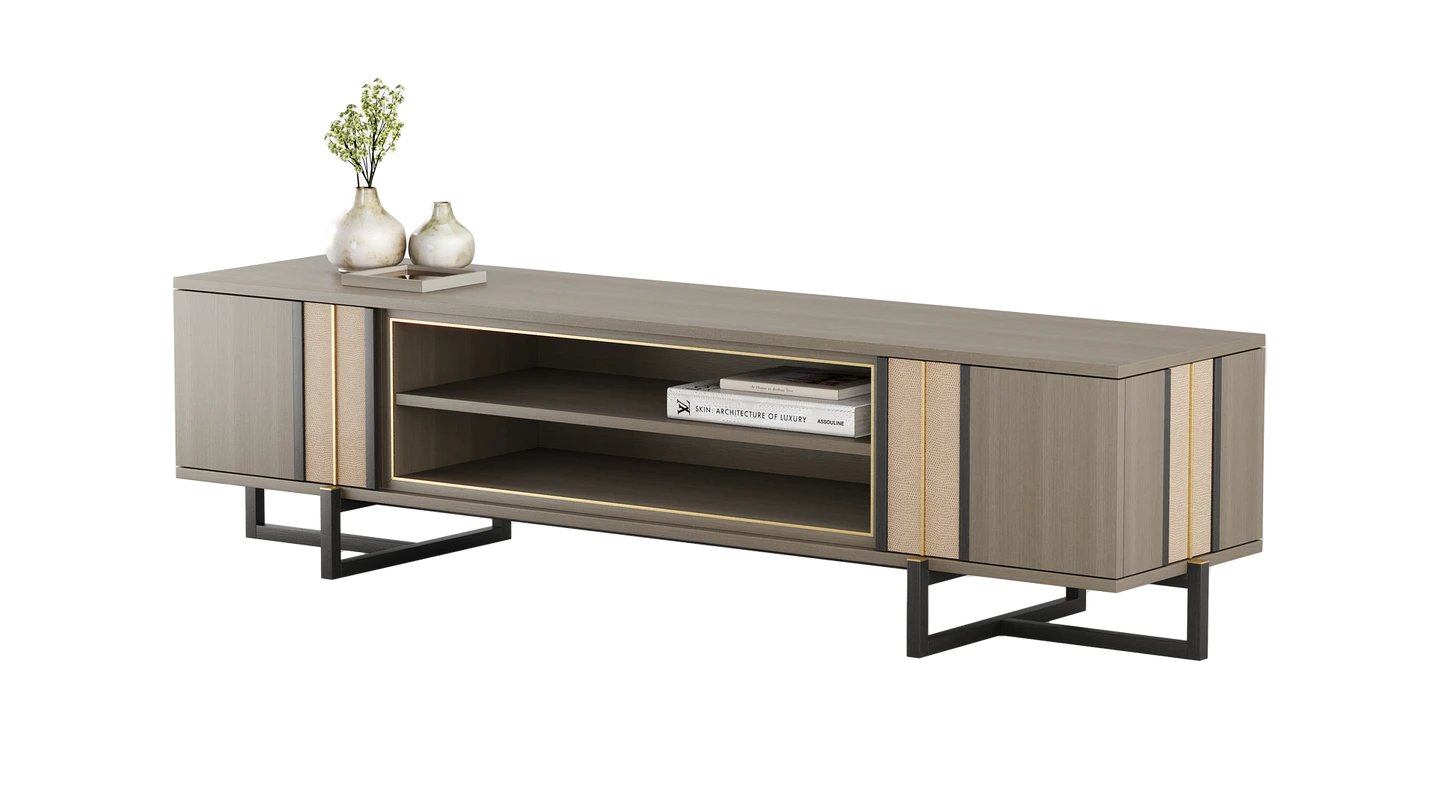 Brushed brass details perfectly offset the smooth wood finish of our GEORGIA TV Unit. It has just enough space for your TV, books and vases, too.