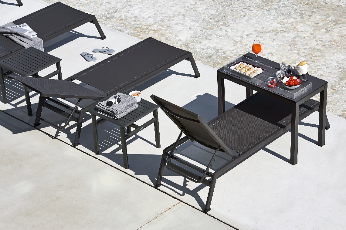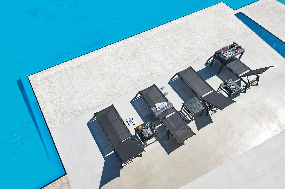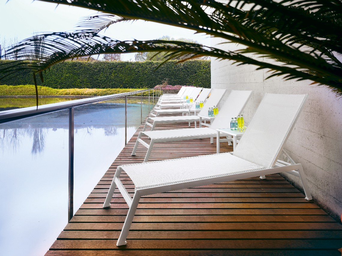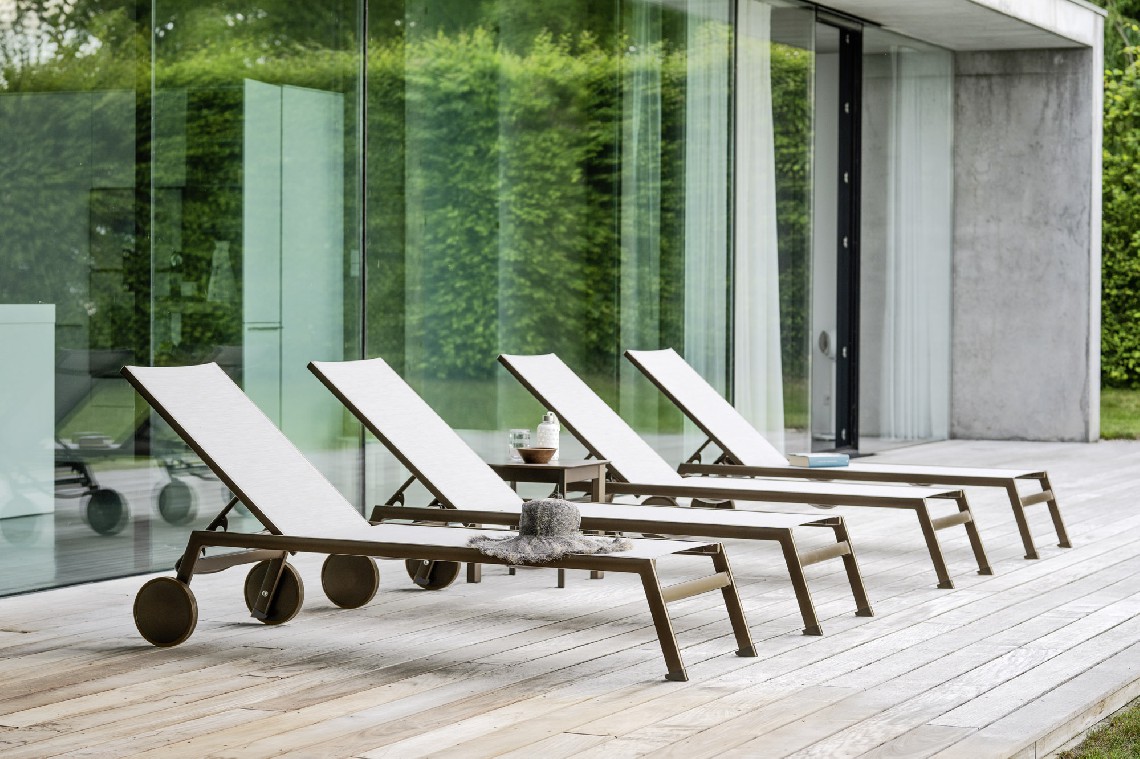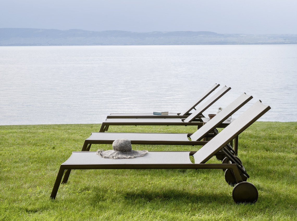 The Victor sunbed is the perfect place to spend a whole day by the pool, on the beach or along the lake shore. The aluminum structure and the batyline perforated fabric cover make it light and versatile, perfect for moving in the direction of the sun if necessary. When not in use, Victor sundecks can be stacked and easily stored. They can also be equipped with wheels, to be easily moved.