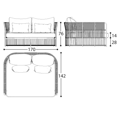 Elegant, spacious, comfortable: the Tibidabo compact daybed is the perfect item for enjoying the beautiful sunny days outdoors. The hand-woven weaving that surrounds the entire structure becomes more and more dense as it rises upwards, like the crown of a tree.