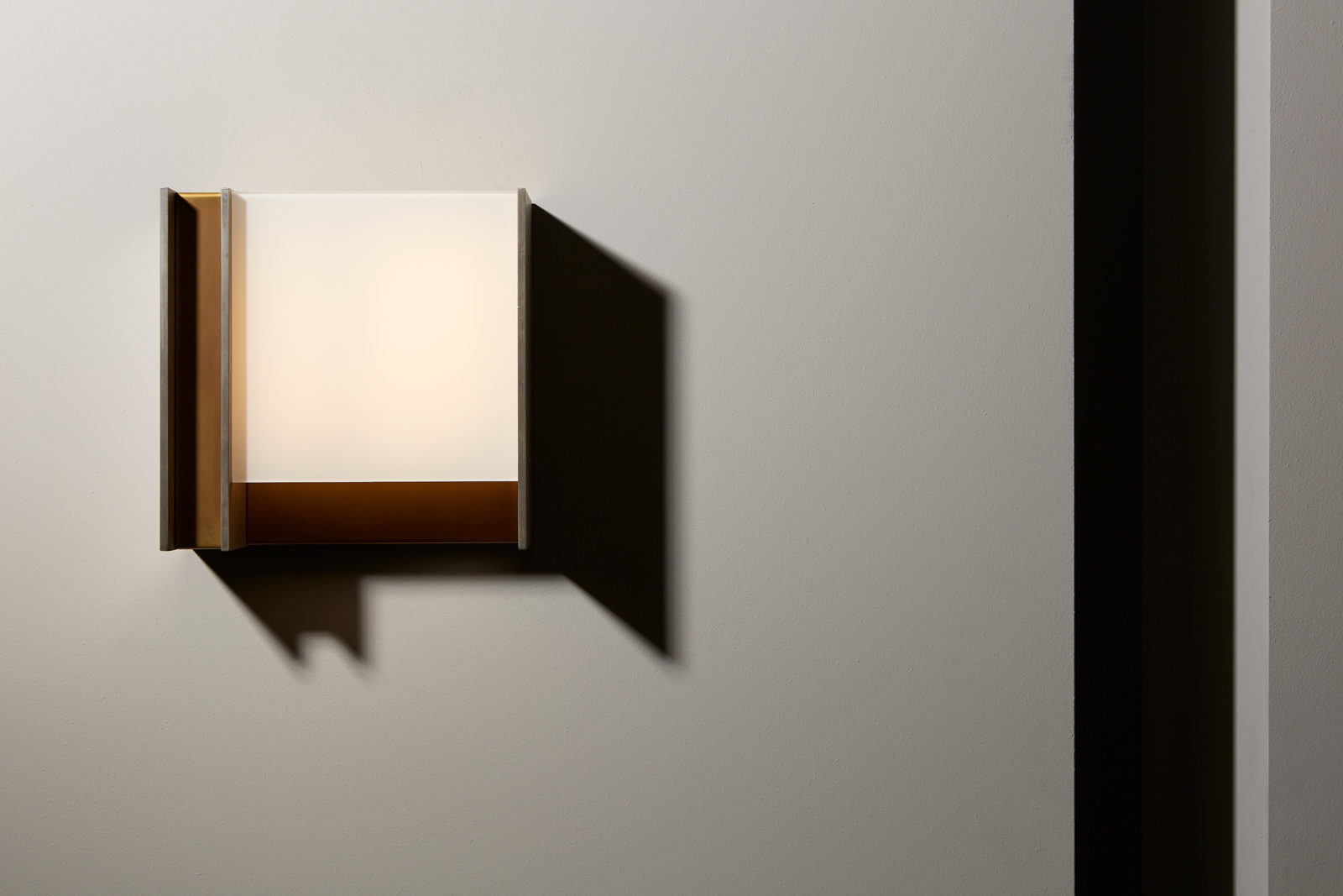 Table lamp with diffused light. Structure in pewter finish and delabré brass or burnished natural brass and dark burnished brass finish. White glass diffuser.